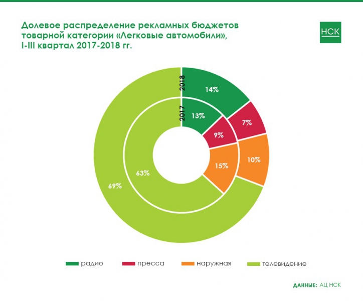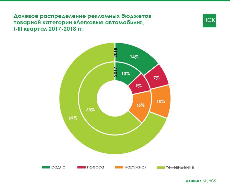 В долевом распределении бюджетов это отобразилось следующим образом: доля радио в указанной категории увеличилось на 4 п.п., а доля телевидения сократилась на 5 п.п.