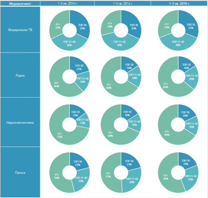 Далее рассмотрим поведение рекламодателей рассматриваемых медиасегментов. Для начала определимся с некоторыми закономерностями в концентрации рекламодателей в них.